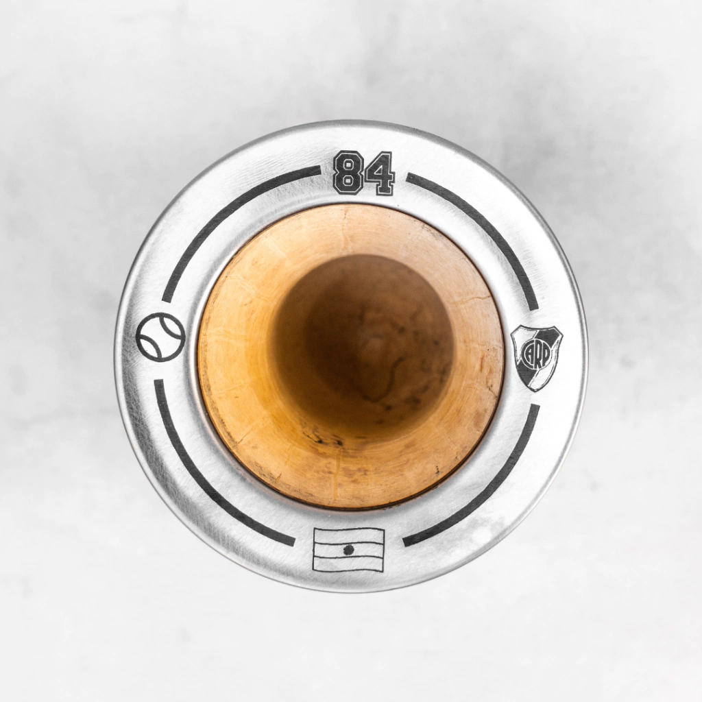 •Mate de calabaza, forrado con cuero vaqueta artesanal.